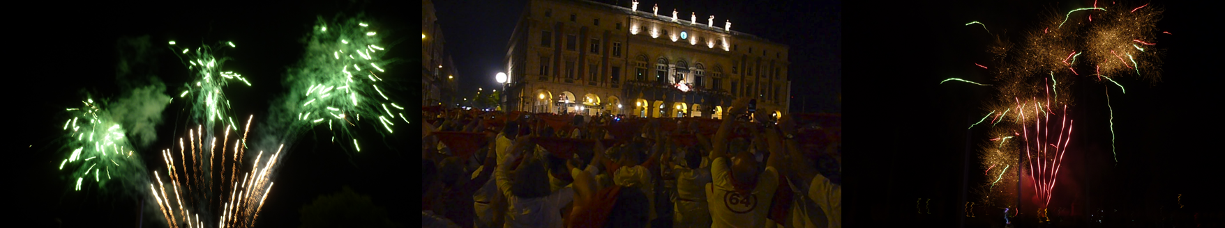 Ambiance de folie sur la place de la Liberté… Les douze coups de minuit sonnent et les premiers artifices s’échappent du sol pour venir briller dans le ciel noir. Spectacle parfaitement agencé, la ville de Bayonne a prouvé encore une fois qu’elle était généreuse et reine en la matière. Peu après le final du feu d’artifices, le roi Léon tire sa révérence sous les applaudissements de la foule. Une masse de foulards rouges s’élèvent, les fêtes s’achèvent avec l’hymne de la Peña Baiona et des étoiles plein les yeux.