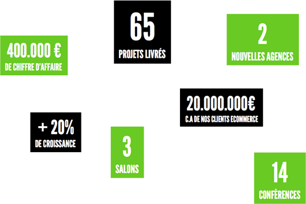 - 3 salons (e-marketing Paris, salon de l’entreprise à Bordeaux et Salon eGuna à Bayonne)